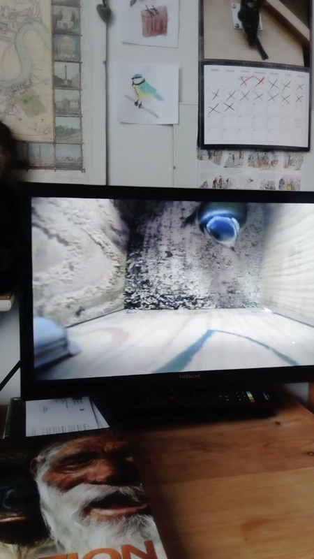 So much more organised than last year, I am glad to say, I have 3 cameras now installed all up and running,  not that I expect to get tenants in all three but I am ready! One of my boxes is in a tree which I placed there in September, it is for BTs and I made it in my mums memory, it has been getting quite a few visits by BTs, the other is a Sparrow box against the house high up and thirdly the box that was Chico and Boulders last year, which also has had a few viewings, incidently the Sparrow box has had a mystery rooster in it but has since not been back  . This is a pic of mums box