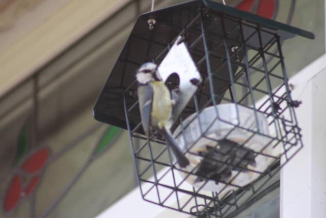 Amanda, I put together my own little feeder a few years ago, Alot people on forum have got one now and it is known as the "Scott" feeder (my last name) I think Kathy named it You can buy it here - www.ebay.co.uk/itm/RSPB-Dual-Suet-Bird-Feeder-For-Suet-Balls-Fat-Balls-Suet-Cakes-etc/143208069505I basically cut a little square out of the feeder to fit a 25mm plate over for blue tits (I'll show you pictures below) this feeder as always been successful for me, I know alot other members have also had success with it. At the beginning of this video of mine from last year you can see the "Scott" feeder in action