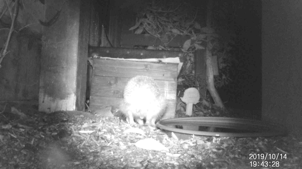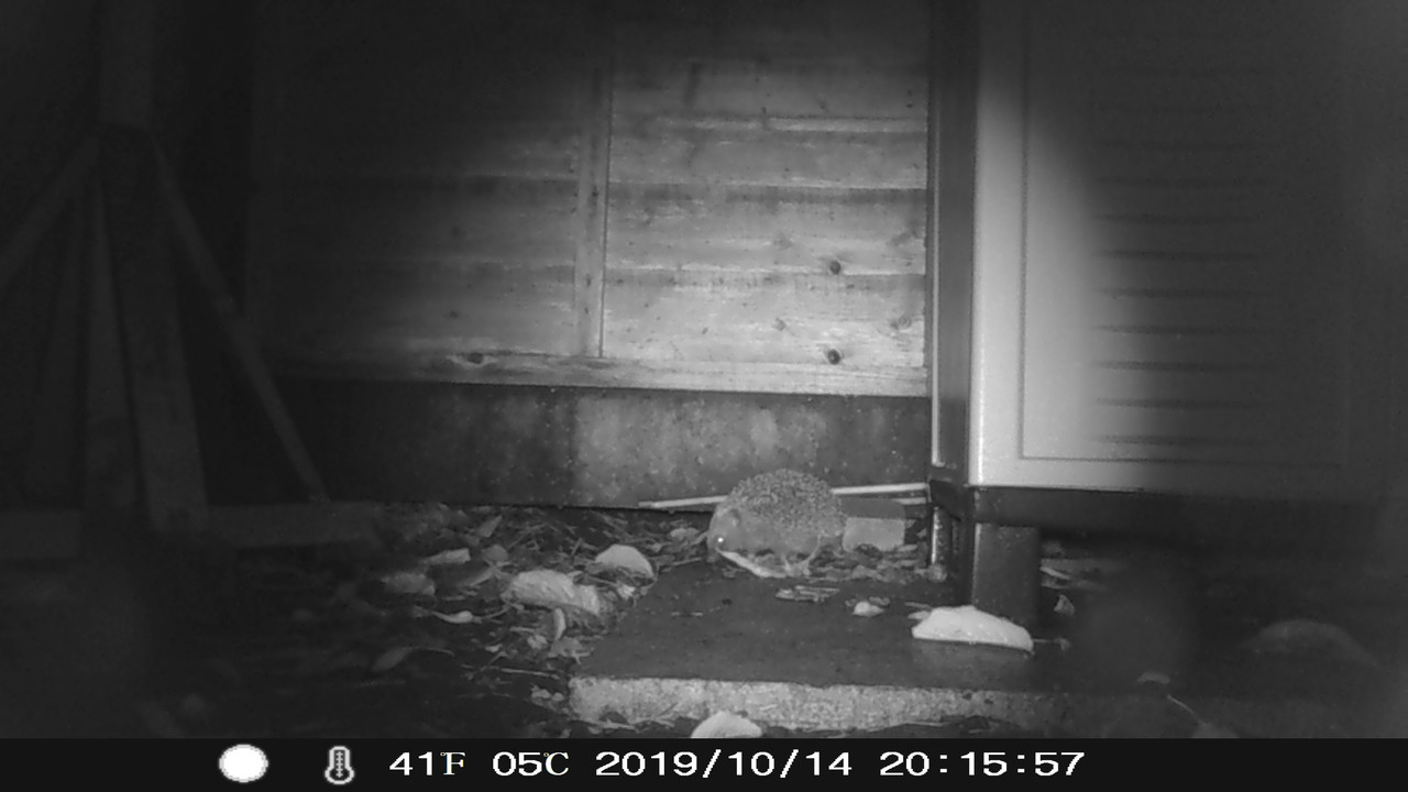 Here's the new hoglet / 8th overall hedgehog. I'm glad the trail camera picked up just how small it is, Camera sometimes makes them look a little bigger but you can see how small he / she is. I'll post videos tomorrow but for now here's a little picture of the newbie!