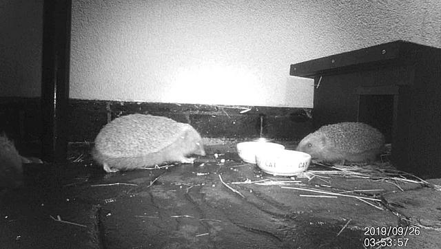 They aren't big Amanda, Should fit in a hog house no problem. Looks like just before 4am is a popular time in the garden, This picture of the trail catches 3 larger hogs 2 by the dish and one just coming into shot. The trail was full night mode by then when we go to bed we switch the lights off under the porch so night mode for the trail as its pitch black.  Here's some pictures of one of the hoglet's earlier in the night when the spotlights was on.   Overall very impressed with the trail camera quality for under £30, Shows you don't need to spend large ££ on trails to get decent pictures / videos. Here's a picture of the hog that I believe is "coming into the shot" on the first picture its head looks abit spiked up like this one caught earlier in the night, The pictures above our screenshots from the videos recorded, This one is a picture from the camera it as the temp on etc.