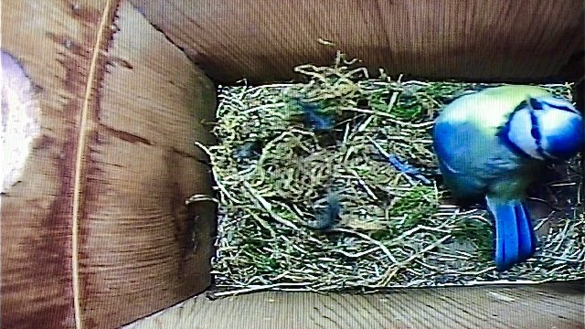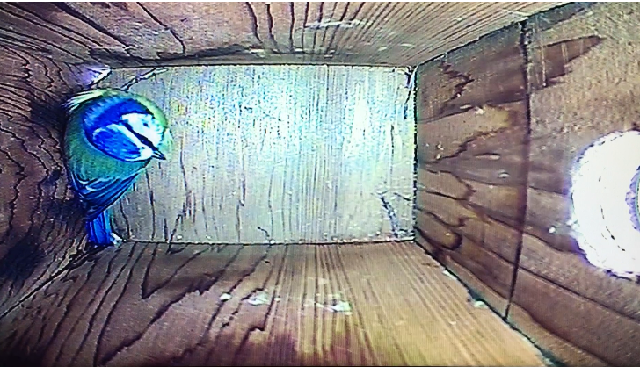 Our little blue tits brought fair bit of straw in this morning, I think she just wants to get going at this point but knows its a little on the early side. Here's a little video of her having a break from the rain