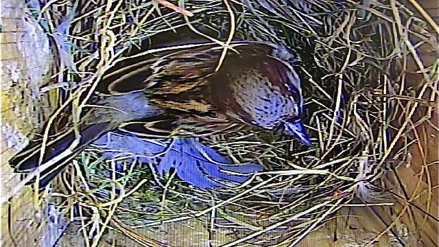 Loving the sparrow videos  How is the Marilyn nest material situation Paul? Who is winning on the in out battle? Hope they’ve come to some agreement and nest progressing nicely Sue