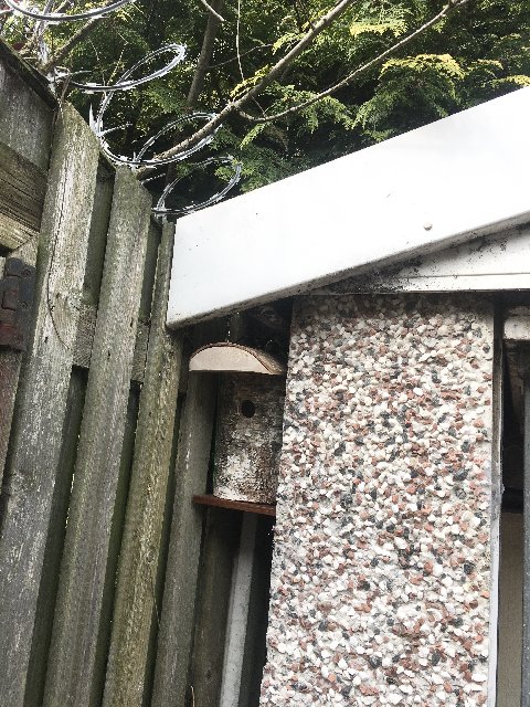 Currently got a wren building its nest in a log box that is jammed down side of my garage against the fence / garage wall. He's been taking moss in for the last hour, I know he builds up to 7 nests though so lets see if the female picks it, If she does i'll set my wildlife camera up outside. Here's a picture of the box