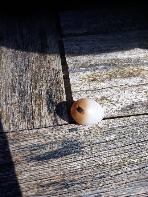 The Robin's nest has been quiet for ages and this is the reason why. We saw this on the lip of the nest a while ago and found it underneath today. Nest deserted