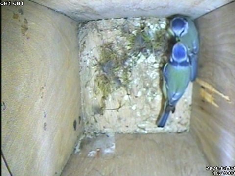 )  Well, this has me beyond excited. Last night before my rooster appeared, I had a visit from this pair of blue tits (photos in wrong order I fear, seems to have changed on post images and confused me - not difficult), the male fed the female a tit bit. He disappeared and then she followed shortly after. My rooster came as normal. This morning ( a landmark birthday) feeling a bit low as unable to see family or friends etc, I turned on to see material in beak of female followed a while later by a nest wriggle. No more material has arrived but this has given me great hope. This has made my day really special, and I hope it means this pair will go on and start building soon.  A very happy bunny today. Sue   w