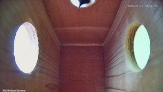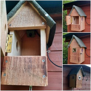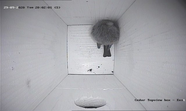 Hi all... Just popping in quickly. I've had a few return visits to the Aldi box by a Great tit...so i suspect it might be selected for roosting. So, as the new camera I got could not work properly due to the roof not being high enough, today we switched out the old Aldi box for a new replica box in Cedar. It has a higher roof to accommodate the wi-fi camera aerial. Just went up in the last hour so as its quite overcast the camera had switched to night vision....didn't get to see the image in proper daylight yet. Hopefully there will be enough light. Delighted to say the camera is working perfectly now though with no more sound interference. Plus the WiFi signal is picking up much better. Success!!   So, that's another job done and we're all set for Autumn now. Also the trio of chicks are still together and are on the feeders daily. Great that they stuck around. We've had a huge influx of birds into the garden again now...even the blue tits are back. They had seemed to have disappeared for good after the cat saga. So next job...the hedgehog house. Bye all.