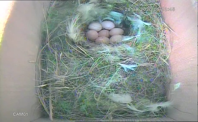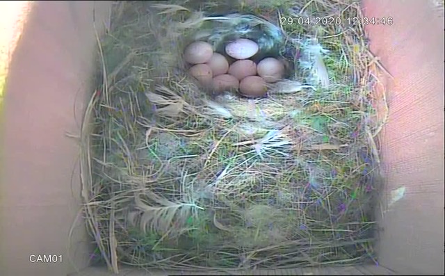 Well Zoom and Skype have surprised me again An 8th egg  She started full incubation at 1pm Monday after incubating a bit on Sunday, all day yesterday with 7 eggs, which is the norm, but now another egg this morning, only just got a clear view of the eggs now without feathers. I’m sure they won’t all hatch at this rate, but at least the number of eggs is up with my average. Hope this is it now