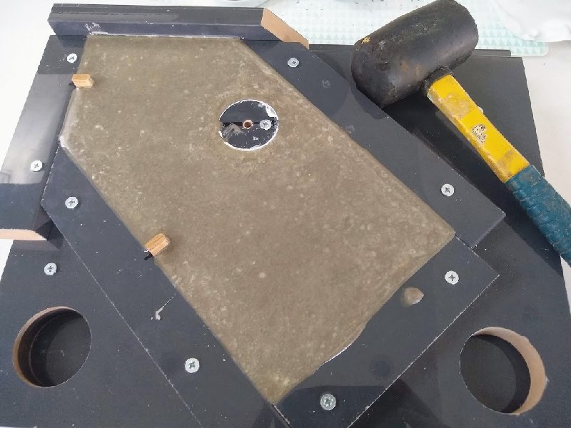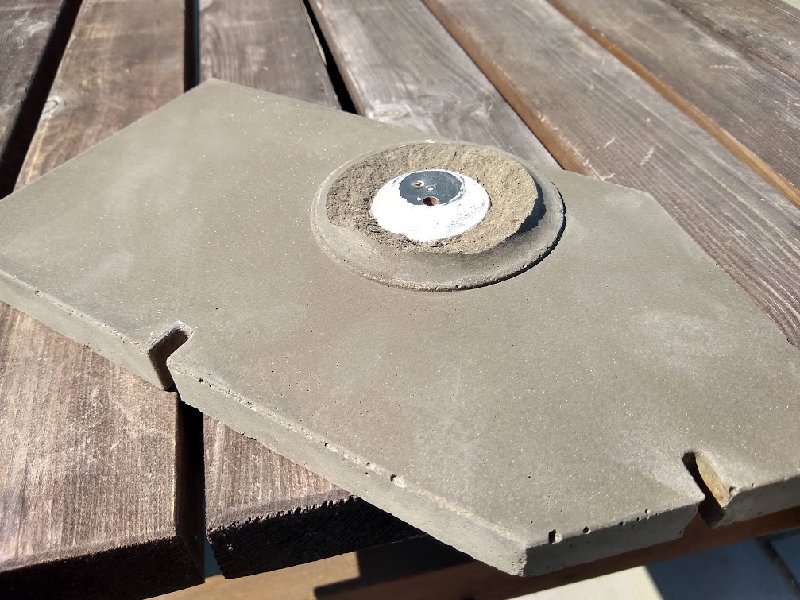 OK - bit of a disaster in some ways, but encouraging enough that I'll persist until I get it right  Lucky I've got about a year to get it sussed. Probably let impatience get the better of me, and demolded at 24 hours which might have been too soon. I think the main issue though was that the shape around the front hole wasn't smooth/tapered enough to let the concrete out. After it broke when trying to remove the whole thing, it still took a hell of a hammering to remove the last of it. Anyway, the bit that did come out intact looks great. You can't really see it in the pic, but the front is almost glass smooth with sparkly bits (sand), and the notches for supports etc seemed to work well. I will think again about how to get the front section to release - perhaps also leave for 2-3 days next time: