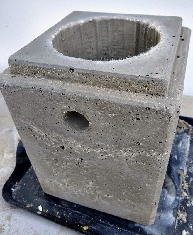 Playing around with a design for an all concrete nest box now, having read the studies that Benn linked in another thread. It does seem as if the Schwegler "woodcrete" boxes beat all others in multiple studies, when put side by side with wooden ones, so I have loosely based my first design on one of their more popular ones. 12cm circular chamber, 28mm hole placed slightly higher (16cm centre to bottom of inside, old boxes 12cm) because studies showed that they prefer that over shallow. The concrete I am using is made with perlite as the aggregate, which is inert (and safe), very light and provides great insulation - an inch of this concrete is more like 5-10 inches of regular concrete, apparently. So similar to woodcrete in that respect, but easier to work with I think. This mix is supposed to be quite porous and breathable, too, but I plan on drilling one or two holes in the base for draininge as well. Glass fibres added for extra strength - this should be very strong. Pics below of the first casting. I have made a 12mm inset at the top so that I can build a 12mm plywood lid that sits snugly, to house the camera and lights. Another feature here is a relatively low ceiling above the hole - just 5cm from the centre of the hole. The sides are 3cm thick where the hole is. Now planning a three hole version as well so watch this space   inside:  mold: