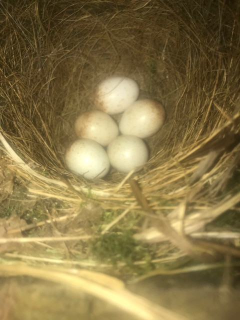 My robin Nest Box with 5 eggs.  Th e robins nest box with 5 eggs.