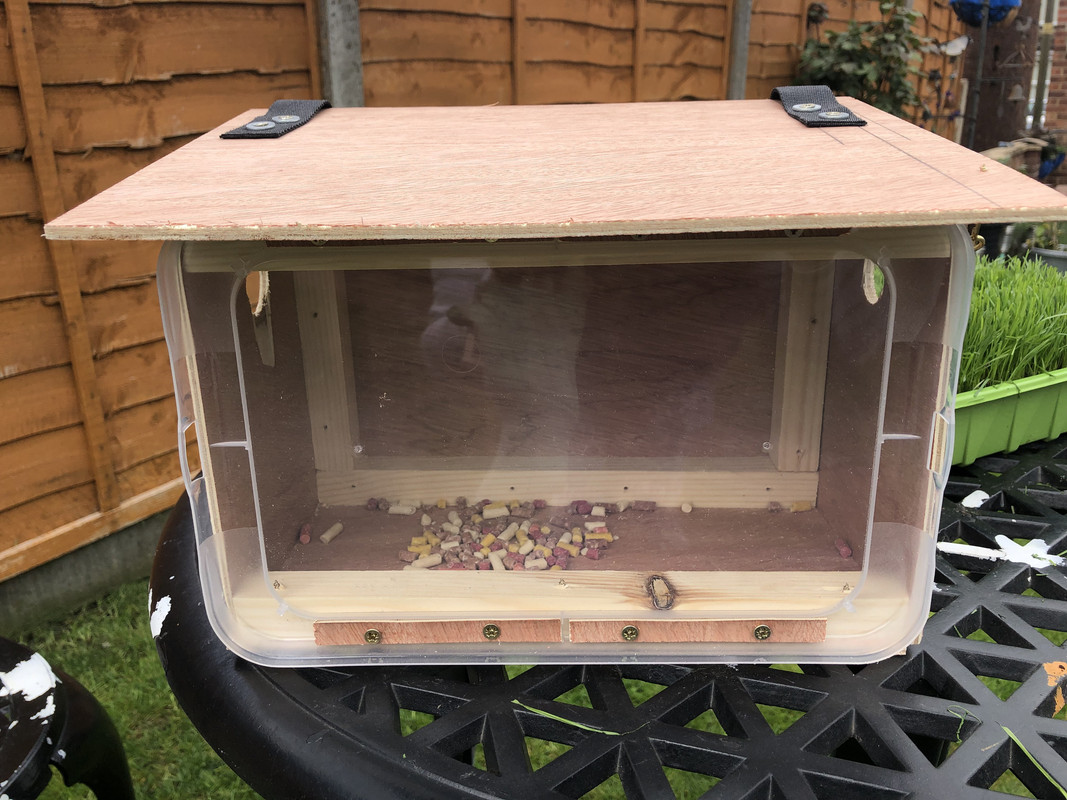 I've removed the main feeder and put the new one on a small garden table below the usual one ,I've opened the lid to see if they go in from there once they have i will see how it goes for them to enter the holes, and close the lid fingers crossed it works