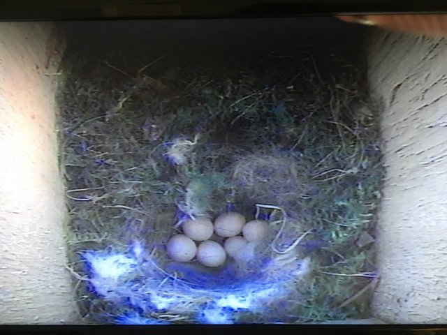 Hi folks well you’ll all be glad to know my female (whom I haven’t named) as of today is currently on 6 eggs, now I don’t know if she would of laid a 7th tonight before bed or whether she’ll lay her 7th in morn. I see her flying sometime with her partner so up to now they are still a pair, although she’s literally out from morn till about 6.45pm he often has come back a couple of times in the afternoon to bring her food but she’s nowhere to be seen.  This was this morning wonder how many she’ll have? Elle xx ![]() ![]() ![]()