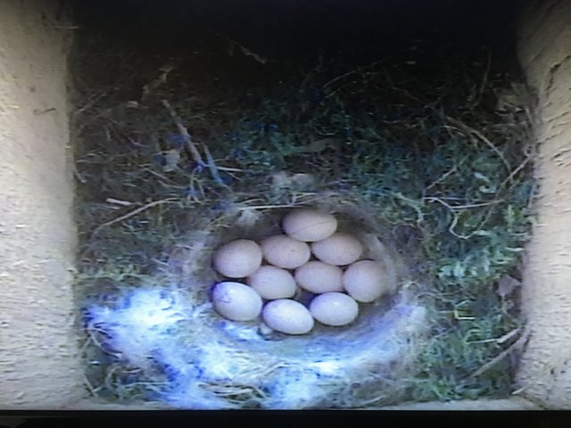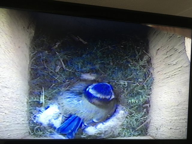 The answer to how many ................... 10  . I thought she’d started incubating yesterday but today this is the final figure and she’s definitely incubating now. ![]()  ![]() ![]() ![]()  she looks so cosy nestled down Mr Bluetit is looking after her, he brings little morsels in & if he is a little late, poor thing doesn’t half get it in the old lug oil  she screams at him, so we know who’s boss Now the waiting game begins. Any idea when to send for mealworms, didn’t know if restrictions are having any affect on postage or even if they are still open Elle xx