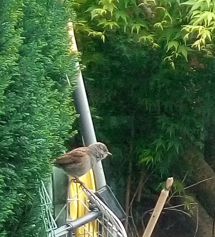 Thank you Taz, me too Got a pic of the cheeky male Dunnock, keeps tapping on my window! I guess he doesn't like his reflection  they are still building in the conifer but a magpie has been watching them closely so not sure if anything will come of it  have been chasing it out when I see it. The conifer is the one just to left of the male bird in the pic, the female is building quite high up around 7ft or so!