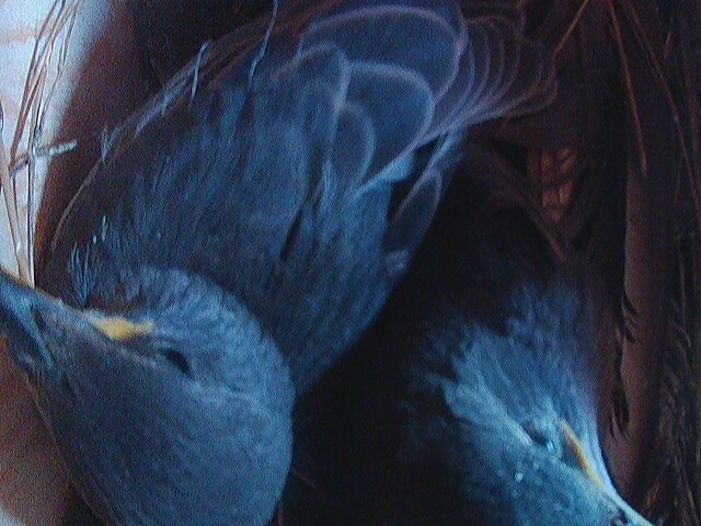 An update on the boxes  our two are still doing well and should be ready to fledge any day now looking at them, the starlings from the front have finally all gone today and are flying around with their parents as we speak, we have another nesting attempt in the tree starling box by a pair, not sure if it is the same pair that originally tried to nest, fingers crossed it all goes well this time! Not too sure what is going on with the sparrows, I think they may have given up as haven't seen or heard much activity from there. The great tits at the allotment box sound like they are ready to go any day now too. Here is a pic of our two today  videos are coming out mostly dark now as they are getting in the way of the entrance hole cutting the light out! ![]()