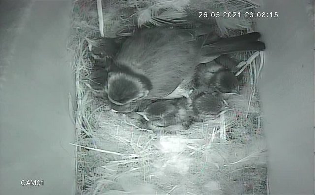 Sadly one chick died yesterday, I watched back footage and it was very active one minute and then just cuddled into the corner of the nest and never moved again. Very warm here yesterday after all the cold so maybe too much for the poor little thing, parents are leaving it, suppose it’s too big to move at this stage. Hopefully the other 8 will make it