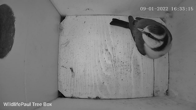 Blue tit activity is through the roof in all the boxes at the moment aswell, Seem to be getting visits later in the day now aswell. Heres a little picture from before, Its a cloudy day and no led light on yet just the ip camera and the nest box window but looks a chubby little blue tit this year!