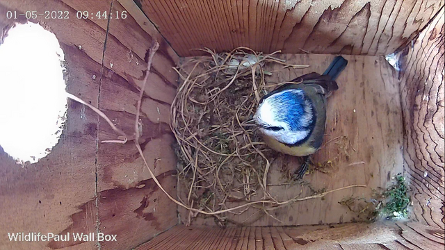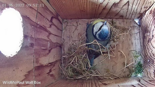 Give up all hope for the blue tits this year, Then this morning this is happening. All this straw as been brought in this morning by this female, Shes got a white patch on her head so easy to spot (i'll post still pictures under the video) Not getting my hopes up but if this does go on to fully build and lay eggs its the latest nest have had being the 1st of may! White patch on the head  sitting about in the nest