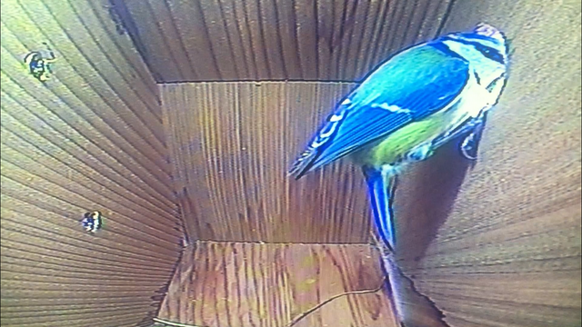 Some small clips from this morning, No new material added, Plenty visits by male and female. She is taken straw out then bringing it back in Here's a little video below, I noticed something today though I don't know if anyone else as noticed this with their birds especially you Matt with having leds. The male blue tits blue colour is brighter than the females especially in the tail and wing area. I wonder if its like this for every male / female? Where his colours are that bit brighter, Never noticed it before but this is my first year with led lights to be able to judge it.