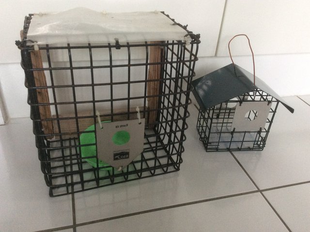 Here are two i wo I have used over the years Pete. The one on the left my son made (originally to cover a wooden bird box to keep predators away) and now used as mealworm feeder. It just need a couple of small cup hooks on a fence, and lifts off for cleaning and topping up. The one on the right is a ‘Scott feeder’ (so called as Paul (wildlife Paul), came up with it one year . Just a caged feeder that several of us bought and adapted with the plate on one or more sides. This one hangs anywhere. Our efforts look pathetic compared to the creations Matt comes up with - he is a genius!! Also the one Karen uses looks good. Many options with a bit of thought. Good luck. Sue