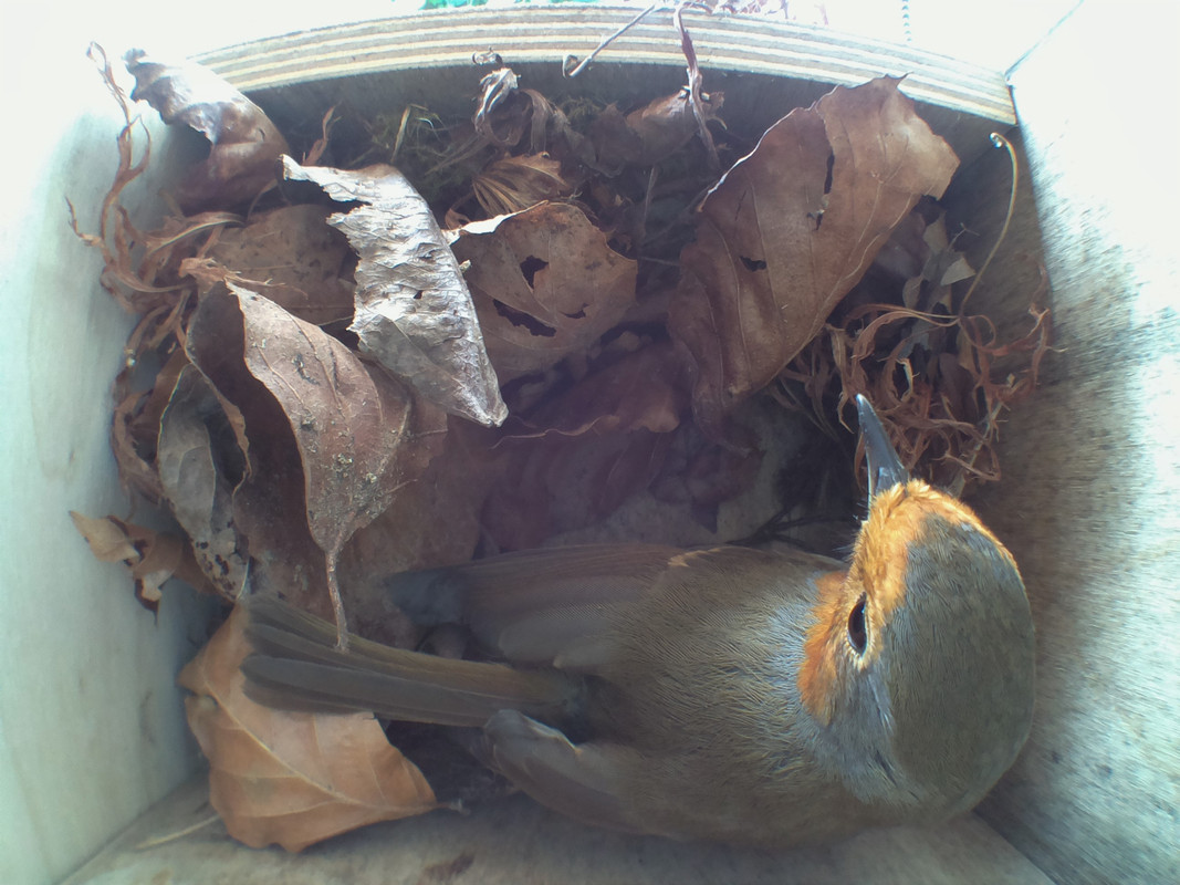 Just had a look at my other box cameras, which I do every morning, and seen this:  This is the "robin" box on the other side of the shed than the bluetit box. As far as I know, a robin had never even found it all season - I'd given up on it (a few wren and bluetit visits). Amazing! She's busy this morning, fingers crossed this one keeps going!!!