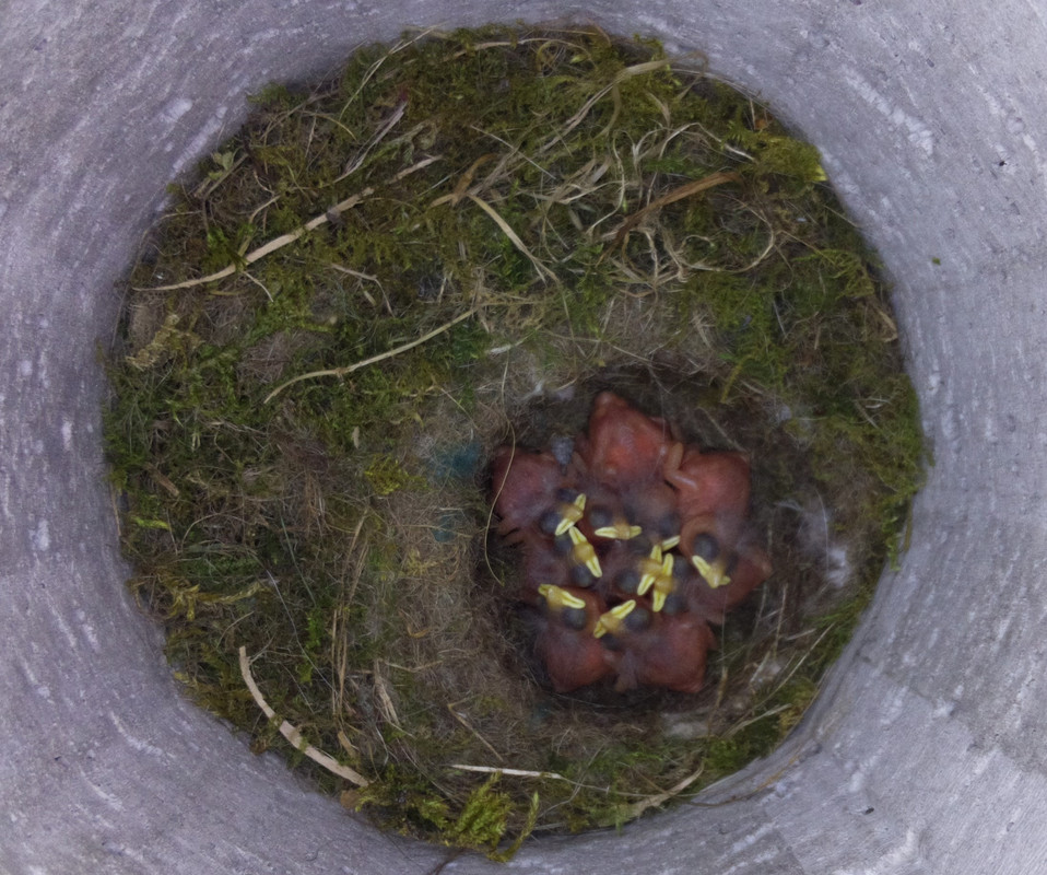 Lovely pic Matt. Thinking about the food situation for the really early stages, it really looked to me as if my chicks struggled to cope with the enormous morsels being offered by the parents. It felt as if the parents couldn't quite master how to break up a massive caterpillar or bug into smaller bits. Mum would go from beak to beak trying to find a taker, and often early on seemed to end up eating it herself. Just another round of speculation on why I lost so many!