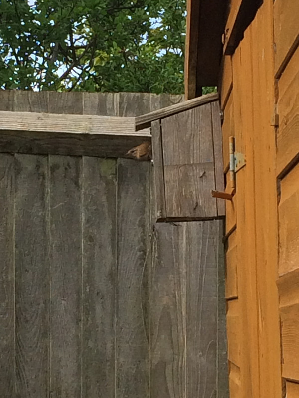 ive looked at the images this morning and to my shock a wren had his head inside the bluetit box and then bounced around over the box, the clip before was of probably martha on the fence looking a bit bothered near the box, that's a bit worrying to me