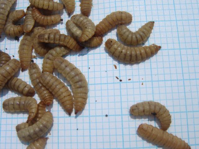 Managed to find this picture of them live Kathy, Look more waxworm-y (not that that is a word haha) I think the blue tits would give them a go live they go crazy for the waxworms. I'll try them out with the usual waxworms / mealworms over breeding season see what happens, I'll start with the one tub with 100 in see how they go down. If they don't like them only would of wasted £2 I am sure the robins sparrows starlings will eat them if blue tits don't.
