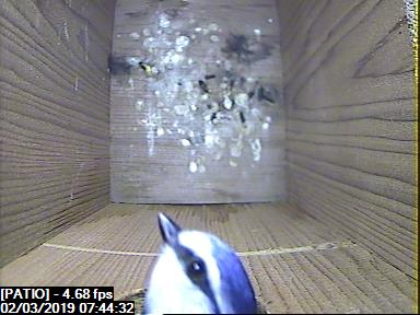 Thanks all....the photo is from a couple of weeks ago when we had a nest wriggle/wiggle in the old box which has been relocated and has the old Aldi camera salvaged from the old Aldi box. I'm wondering if it was maybe the female from last year just reminiscing  The past week has been very quiet on the visit front Yes I definitely need to keep using the old grey matter. I notice my status now reflects my advancing years