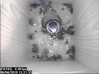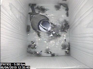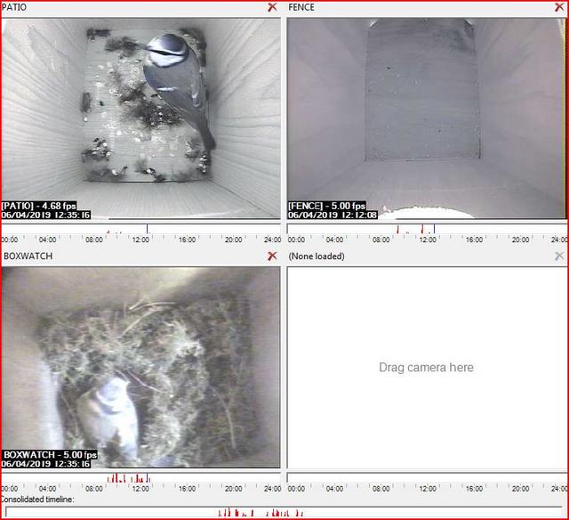 I've never had two nests before Elle. Nearest was last year with a started but abandoned great tit nest in the patio box and a bluetit nest in the fence box position. The one nesting in the Box Watch box is still building so maybe another female or it may be the building female just putting her stamp on the other box.  I need at least three birds on the monitor at the same time to be sure but they are playing 'now you see me now you don't' at the moment  I'm going to have to call the female May I think...short for maybe.  I've had another visit from a female in the fence box this morning ...wriggles and tapping....then she flew out into the variegated holly next to the box and disappeared.  This is the opposite direction to May's nest.  Time will tell...back to the washing up